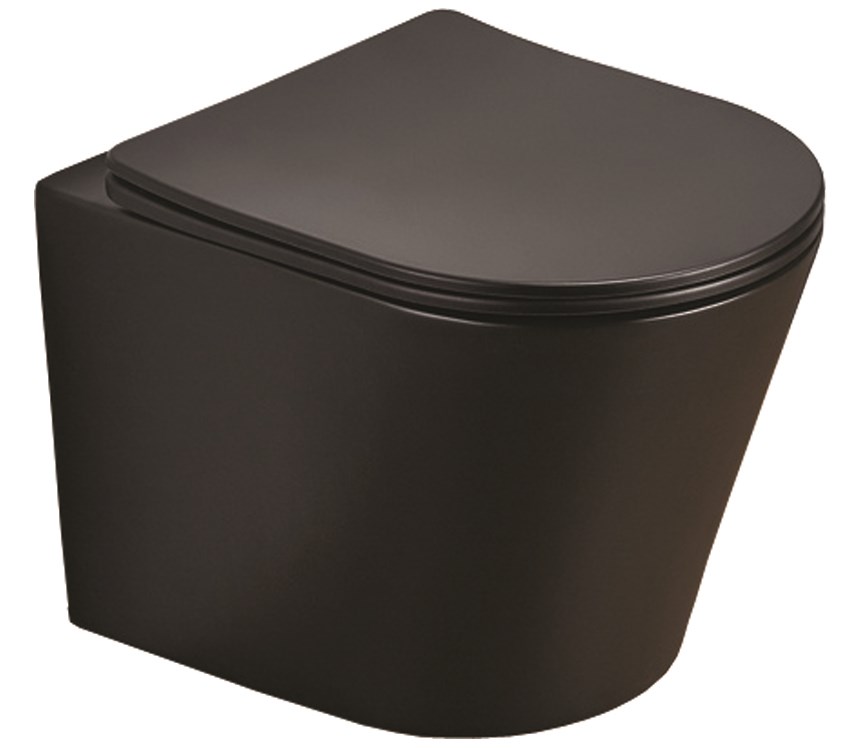 Унитаз подвесной Azario Teramo 480х365х360 безободковый, в комплекте с сидением микролифт, черный матовый (AZ-053E-R-MB SP)