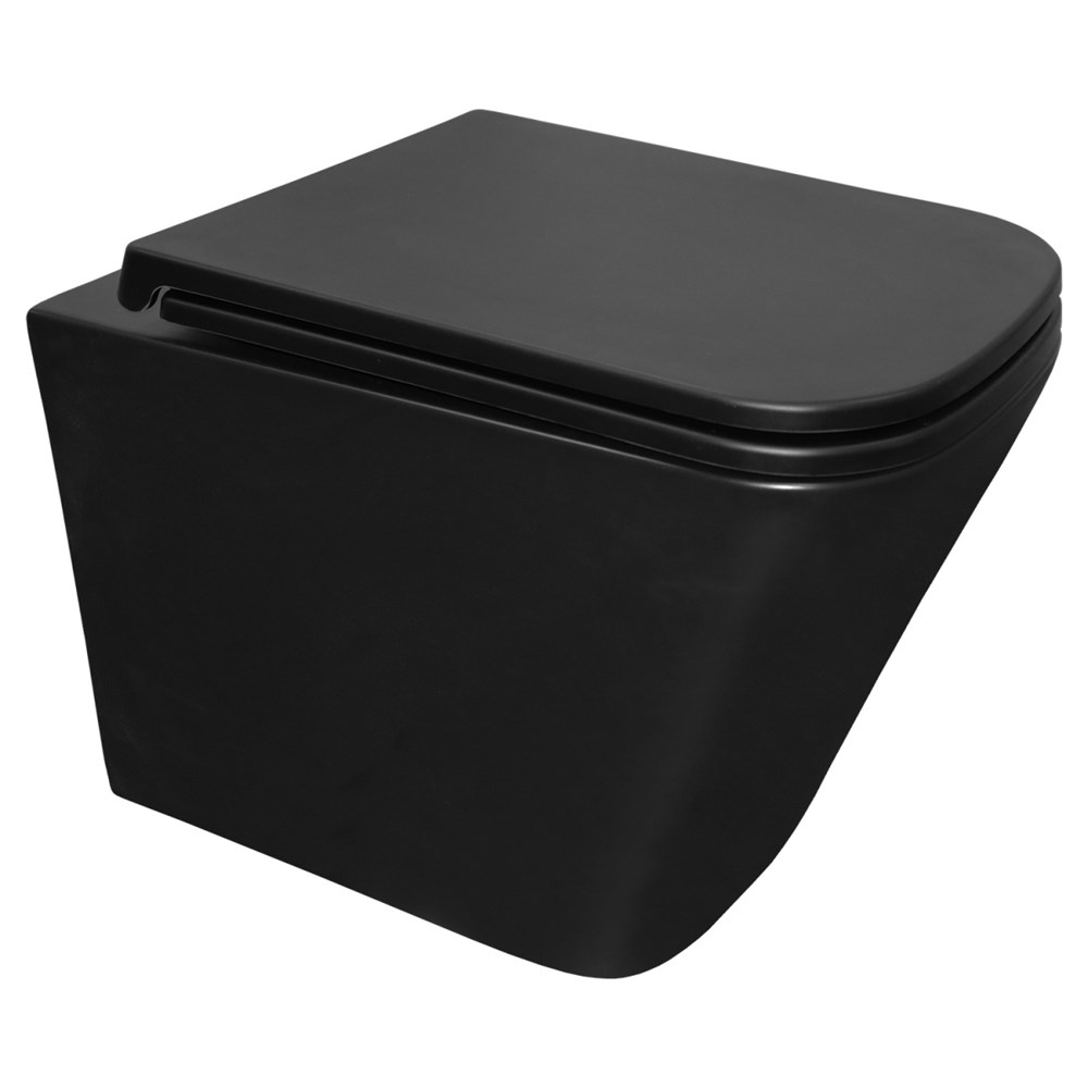 Унитаз подвесной Azario Teramo 490х345х355 безободковый, слив скрытое торнадо, быстросъемное сиденье микролифт, черный матовый (AZ-0052-UQ3MB)