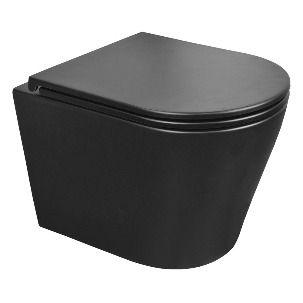 Унитаз подвесной Azario Teramo 515х355х365 безободковый с сиденьем микролифт, черный матовый (AZ -053E-R-MB)
