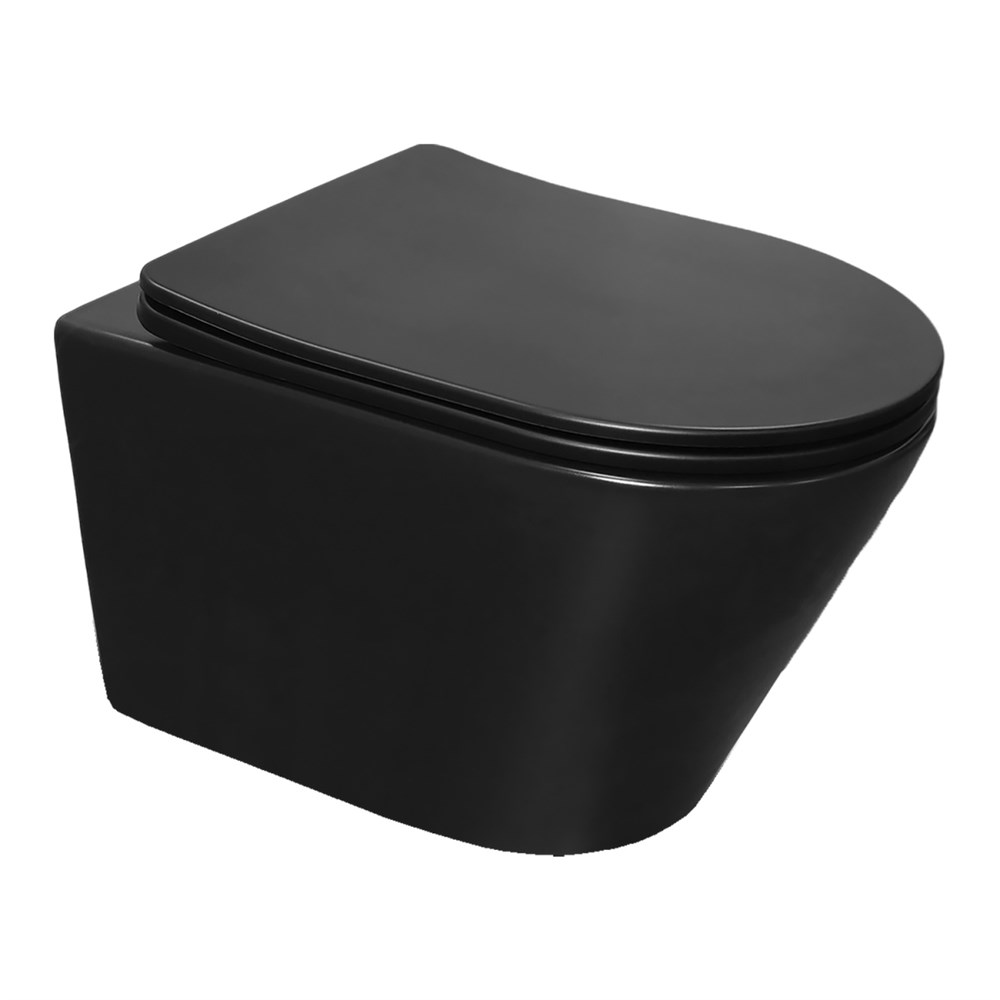 Унитаз подвесной Azario VELA 360х480х360 безободковый, система смыва "Торнадо", с быстросъемным сиденьем "Микролифт", черный матовый (AZ-2480MB)