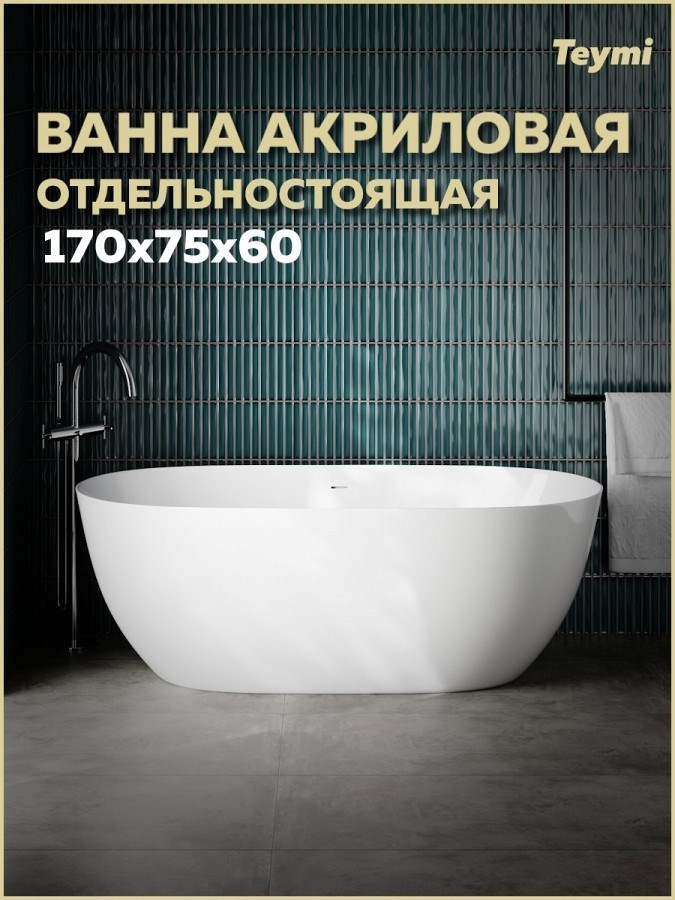Ванна акриловая 170х75 отдельностоящая Teymi Lina Pro белая T130203