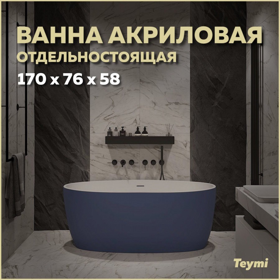 Ванна акриловая 170x76 отдельностоящая Teymi Lina синяя матовая T130102