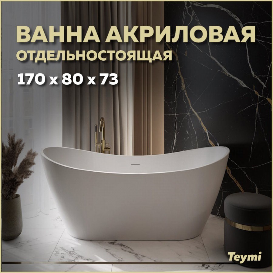 Ванна акриловая 170x80 отдельностоящая Teymi Ellie белая матовая T130115