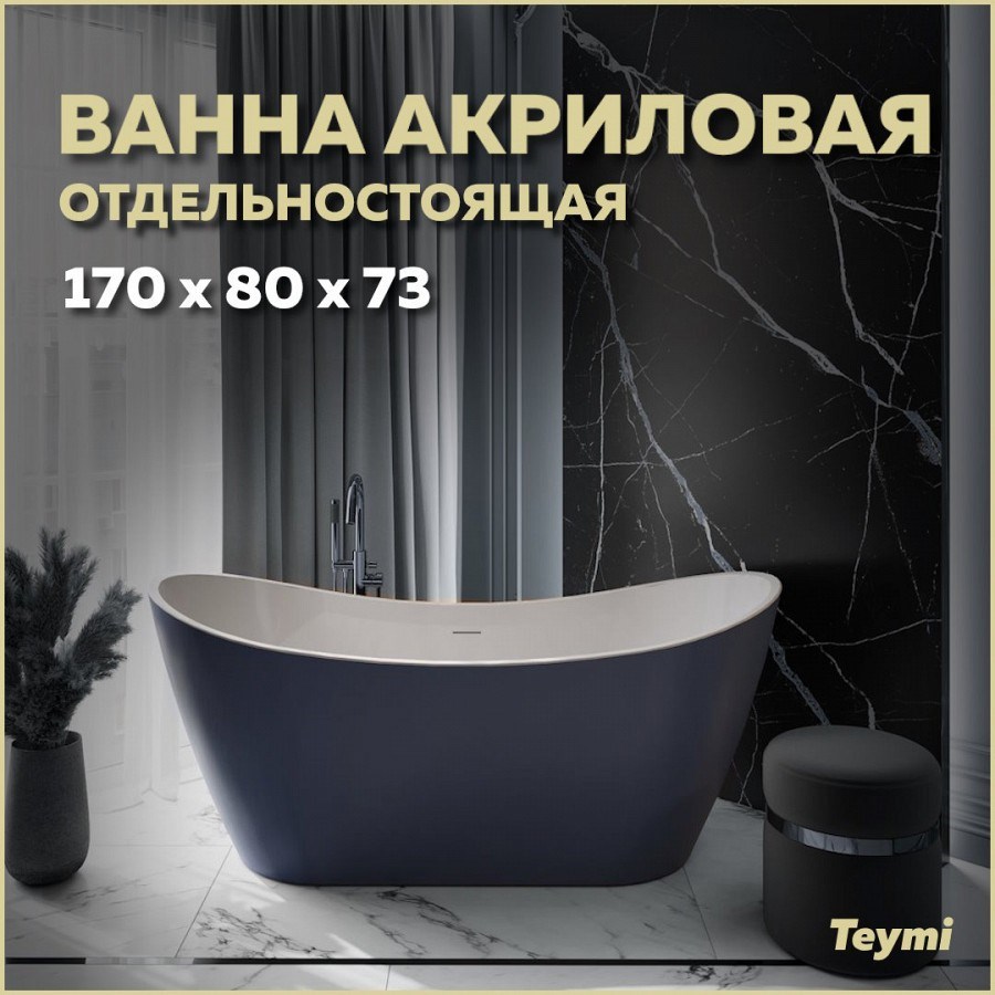 Ванна акриловая 170x80 отдельностоящая Teymi Ellie синяя матовая T130116