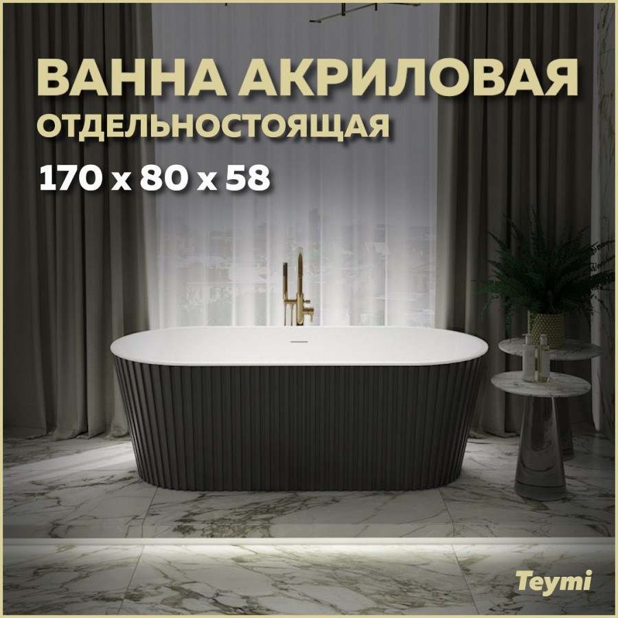 Ванна акриловая 170x80 отдельностоящая Teymi Kati чёрная матовая T130113