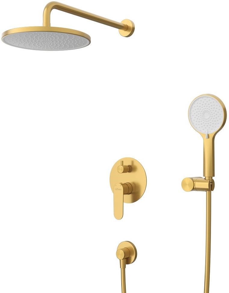 Оснащение: встраиваемый смеситель с переключателем на два выхода, верхний душ с кронштейном, ручной душ 3-х режимный со шлангом, штуцером и держателем
