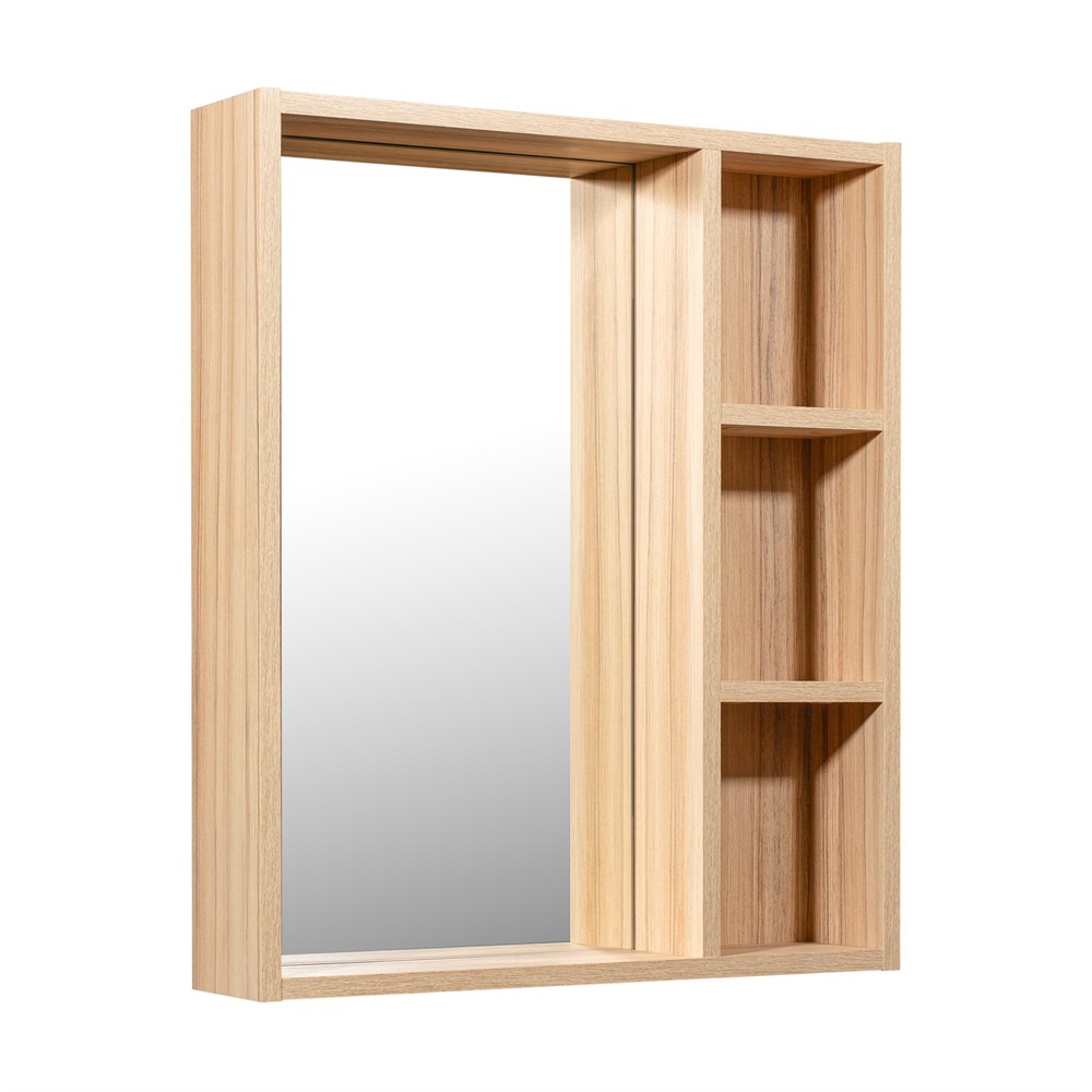 Зеркальный шкаф для ванной RUNO ЭКО - превосходное решение для современного оснащения ванной комнаты. Зеркало для ванной ЭКО - это стильное сочетание натурального дерева корпуса из ЛДСП в цвете лиственница и зеркальной задней стенки. Шкафчик в ванную оснащён нижней полкой и двумя открытыми полками сбоку. Шкаф в ванную - универсальный (для смены ориентации изделие поворачивается на 180 градусов, что достигается посредством переноса навесов на противоположные отверстия). Мебель для ванной RUNO - красота и практичность в мелочах!