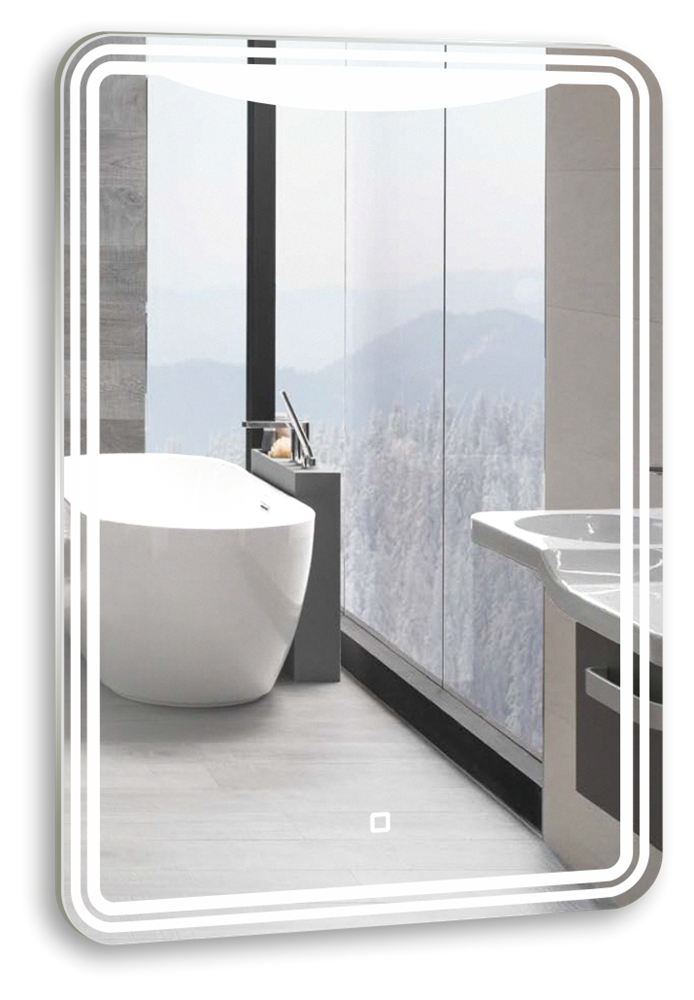 Зеркало с LED-подсветкой. Модель сделана из стекла высшего качества M0 (влагостойкое, минимальные оптические искажения). LED-подсветка выдерживает до 50 тыс. часов работы в непрерывном режиме. Изделие оснащено сенсорным выключателем с функцией плавного диммирования, с запоминанием последнего значения. Короткие касания светящейся области включают/выключают подсветку, длительное касание меняет яркость свечения. Экологически чистый продукт выполненный по стандартам ЕС.