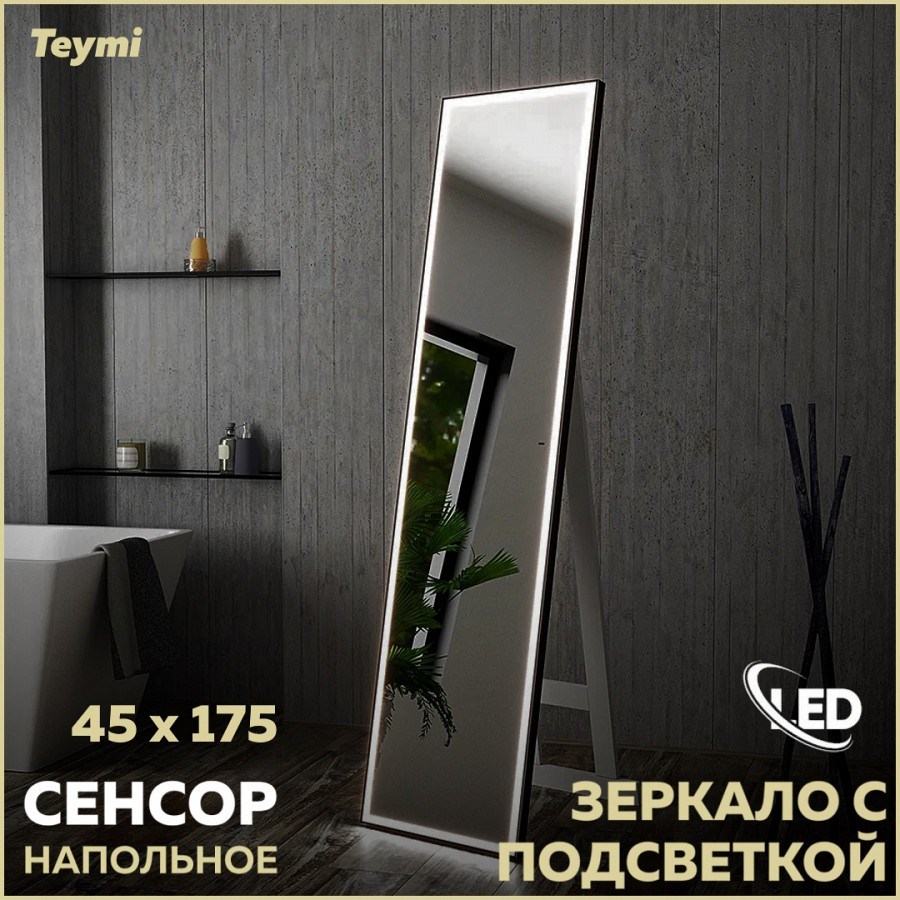 Зеркало напольное с подсветкой в полный рост Teymi Helmi Black Edition 45х175 LED сенсор на взмах T20317IR