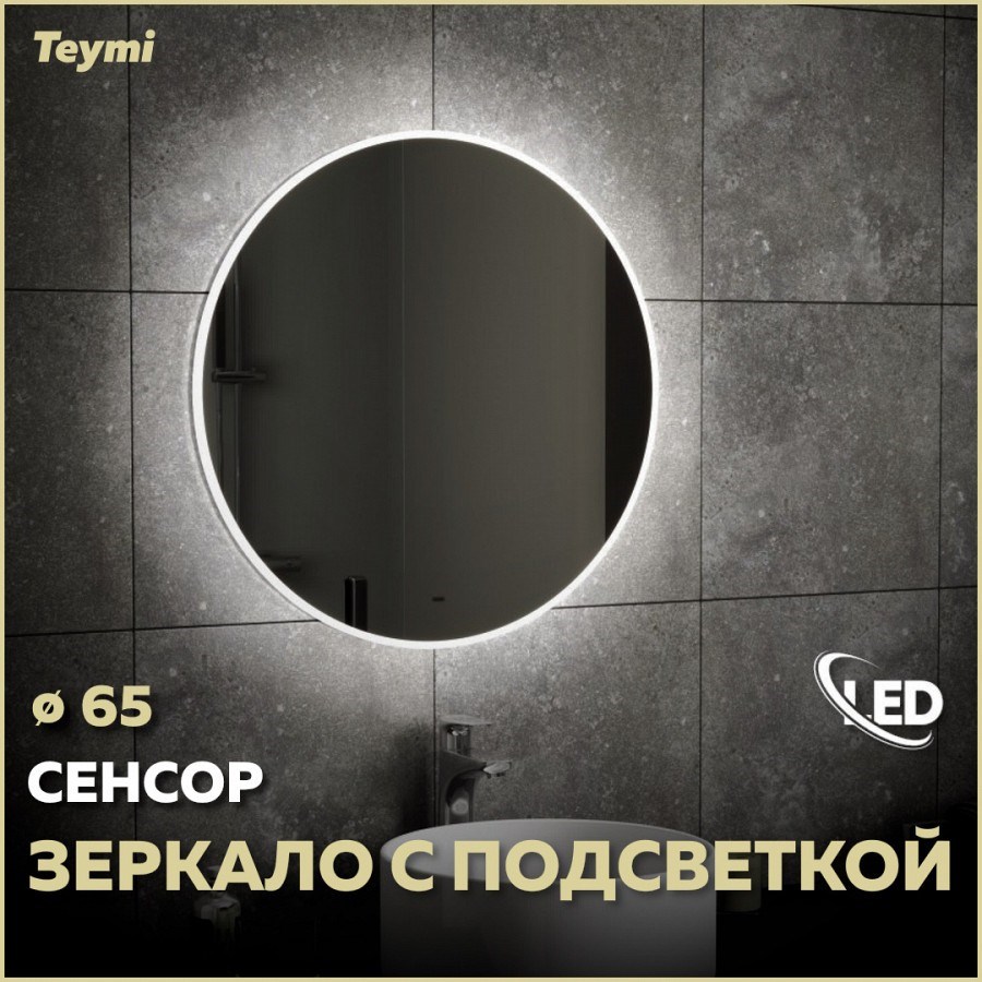 Зеркало настенное с подсветкой в ванную круглое Teymi Lina D65 LED сенсор на взмах T20104IR
