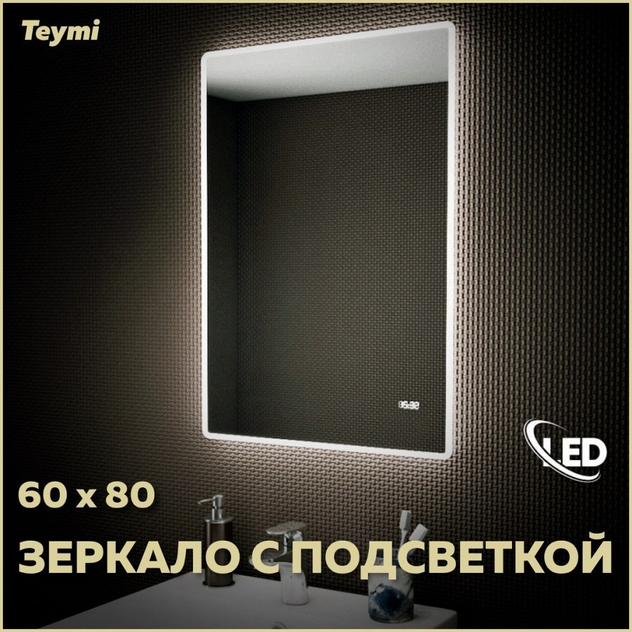 Зеркало настенное с подсветкой в ванную Teymi Aina 60х80 LED часы T20004С