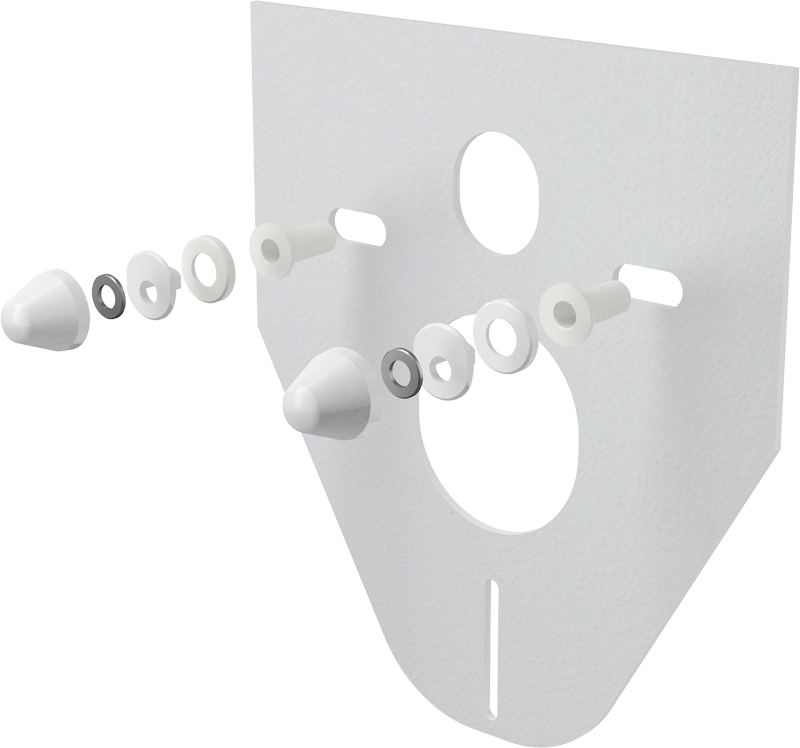 Звукоизоляционная плита для подвесного унитаза и для биде с принадлежностями и колпачками (белыми)