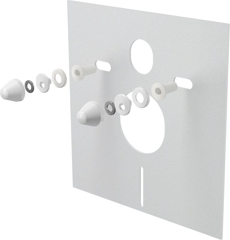 Звукоизоляционная плита для подвесного унитаза и для биде с принадлежностями и колпачками (белыми)